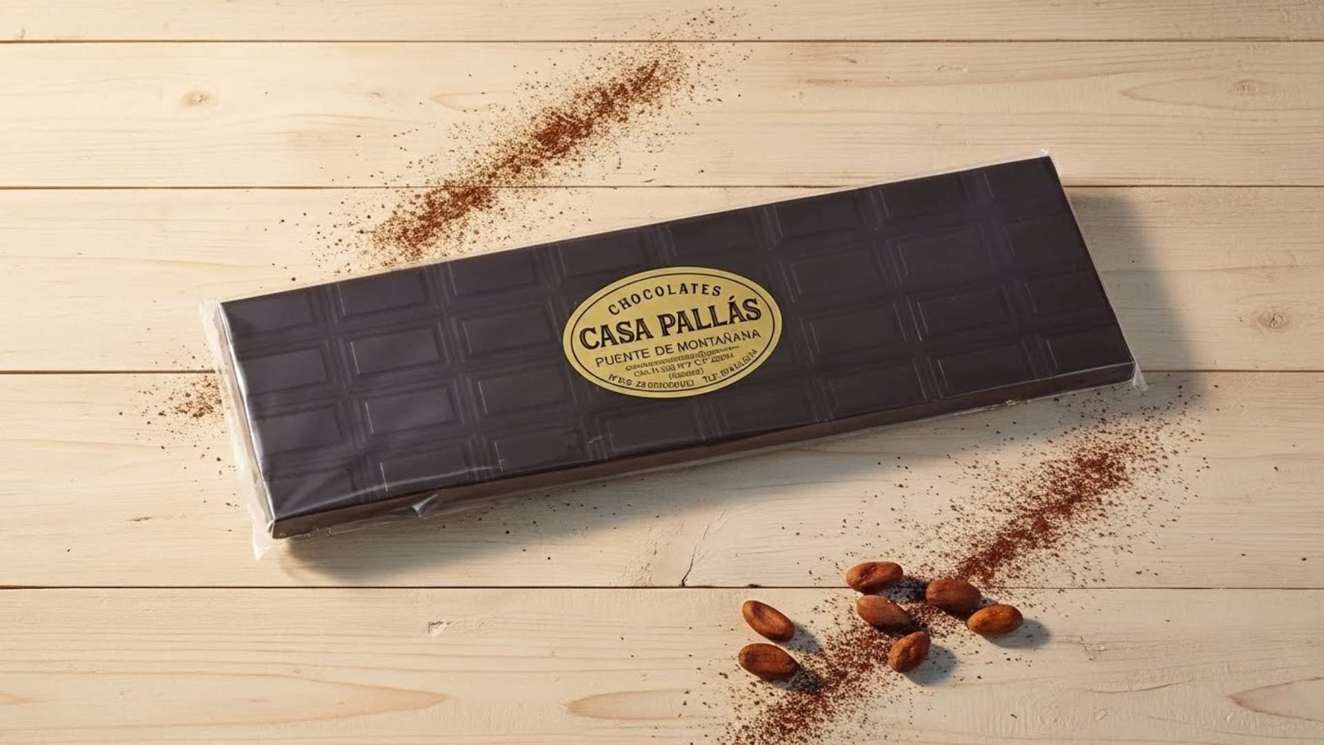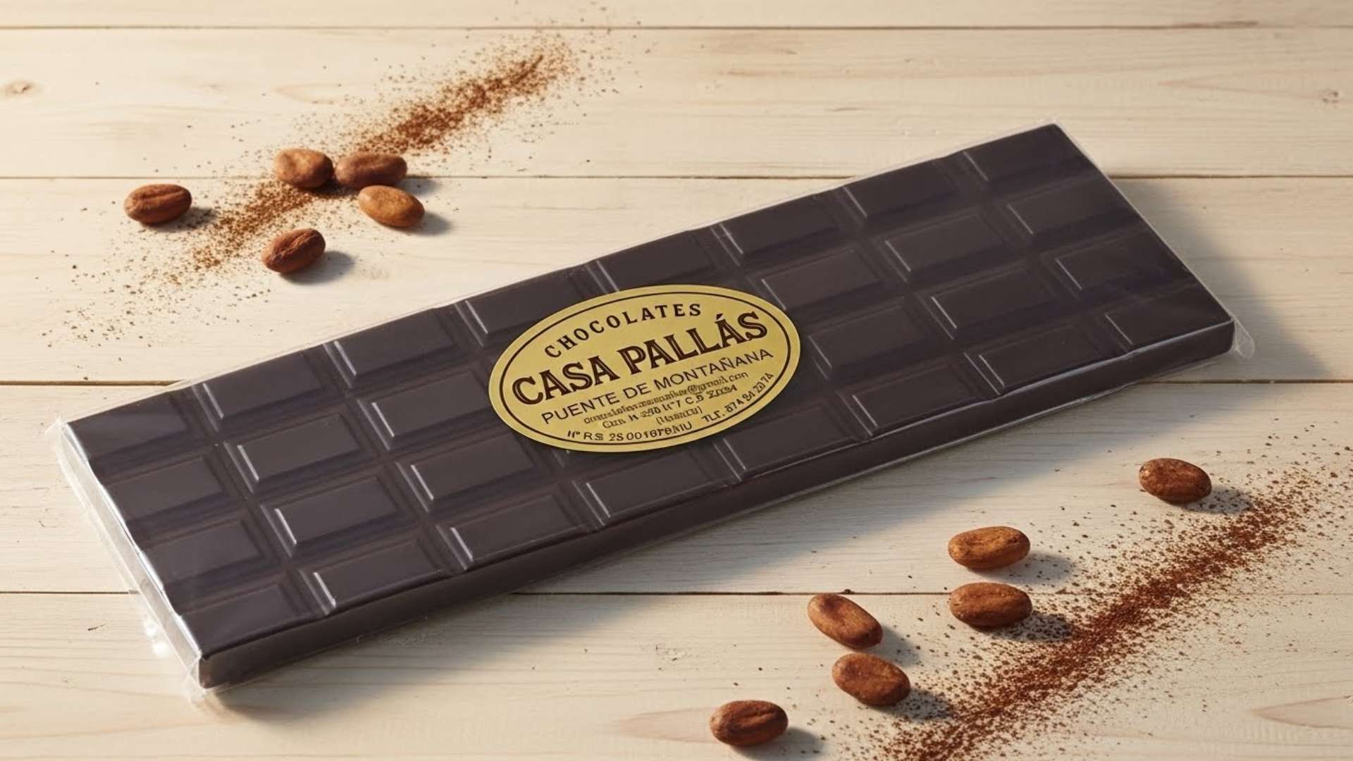 Tableta elaborada artesanalmente por Chocolates Casa Pallás, en el entorno natural de Puente de Montañana.