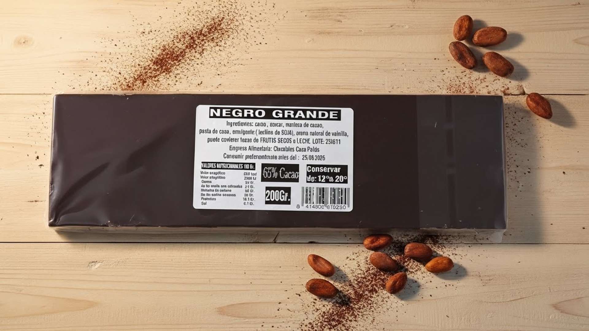 Chocolate negro 65% cacao en formato grande: intensidad y tradición en cada onza.